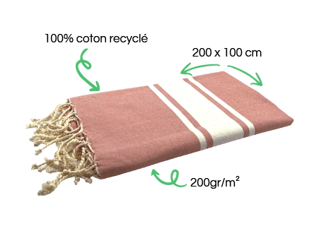 Nos foutas sont fabriquées en coton, en coton recyclé, ou en coton bio selon les modèles. Ce matériau est reconnu pour sa durabilité, sa douceur et sa capacité absorbante. Nous privilégions des matières écoresponsables et des textiles issus d’un tissage nouées à la main.